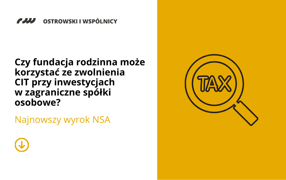 Czy fundacja rodzinna może korzystać ze zwolnienia CIT przy inwestycjach w zagraniczne spółki osobowe? Najnowszy wyrok NSA