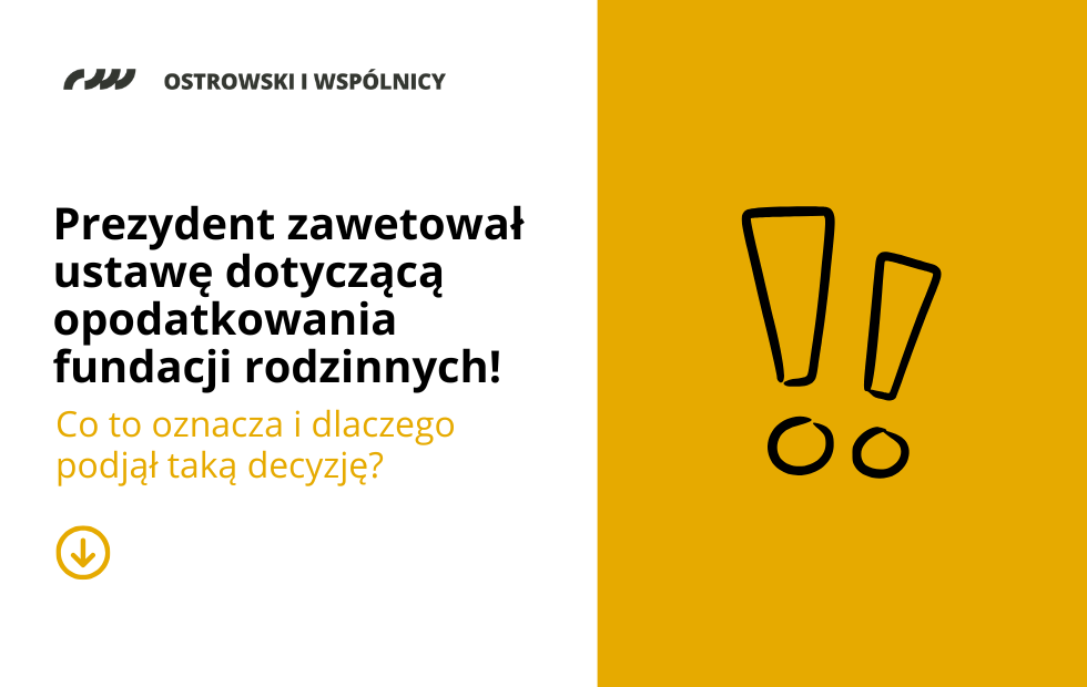 Prezydent Karol Nawrocki zdecydował wczoraj (27.11.2025 r.) o zawetowaniu nowelizacji przepisów podatkowych, które miały wprowadzić istotne zmiany w funkcjonowaniu fundacji rodzinnych. W tym artykule wyjaśniamy dlaczego prezydent zgłosił weto oraz jakie są praktyczne konsekwencje tej decyzji.